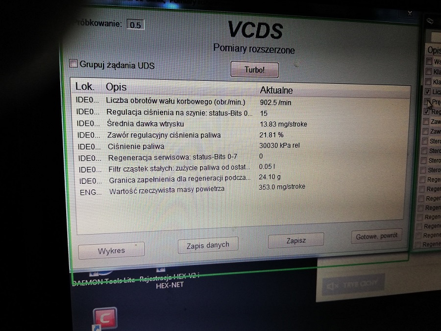 zrobiłem pomiary podczas pracy silnika
