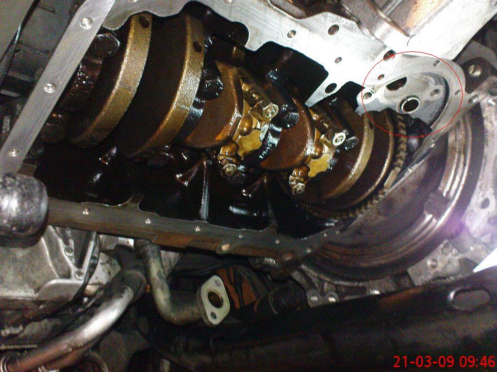 Odkręcamy miskę olejową 16szt.śrub (dwie ostanie śruby są ukryte pod kołem zamachowym - trzeba obrócić koło zamachowe w jednym miejscu jest wyfrezowany uskok na - przez owalny otwór w obudowie miski (są dwa) wkładamy ampol .Obrót kołem zamachowym wykonujemy opuszczając jedno koło na podłogę wbijamy piąty bieg i kręcimy drugim kołem.