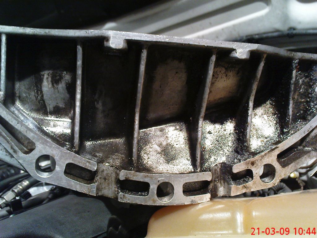 Zdejmujemy miskę schodzi lekko (nie podważamy to aluminium ) ,oczom ukazuję się przegroda fali oleju jest na wcisk więc bez problemu się ją wyjmuję ,mamy teraz pompę oleju na wierzchu .Pompa mocowana jest za pomocą dwóch śrub ,wykręcamy i musimy pociągnąć pompę w dół (troszkę mocniej ) wymieniamy na nową i składamy w odwrotnej kolejności.Oczywiście przed złożeniem musimy wyczyścić wszystko na błysk i założyć nową uszczelkę miski olejowej.Wkręcając śruby z powrotem trzeba gwinty posmarować klejem do śrub bo drgania są duże a nie zagląda się często pod spód silnika.