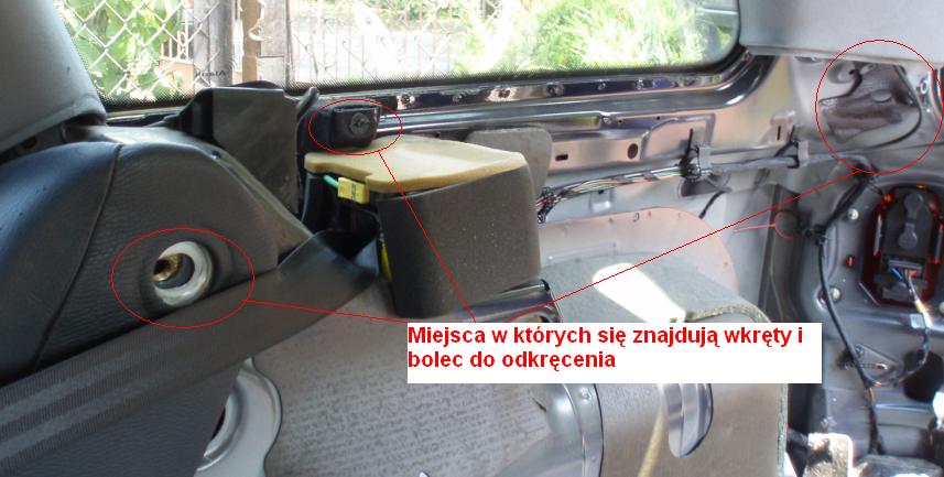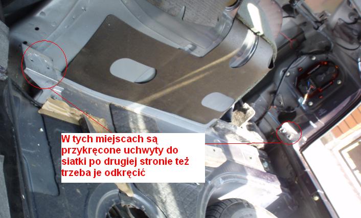 1) Odkręcamy boczną tapicerkę w miejscu gdzie się trzyma roleta bagażnika i w miejscu gdzie się ja zahacza.