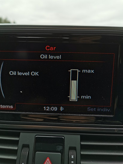 Ile potrzeba oleju do A6 C7 2.0 tdi ultra 190 km 2014? Nie ma bagnetu, tylko na monitorze pokazuje, czy poziom jest ok.