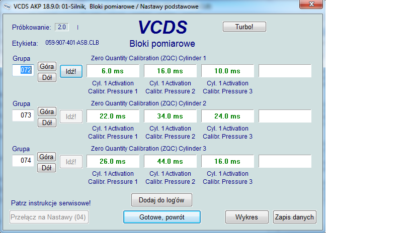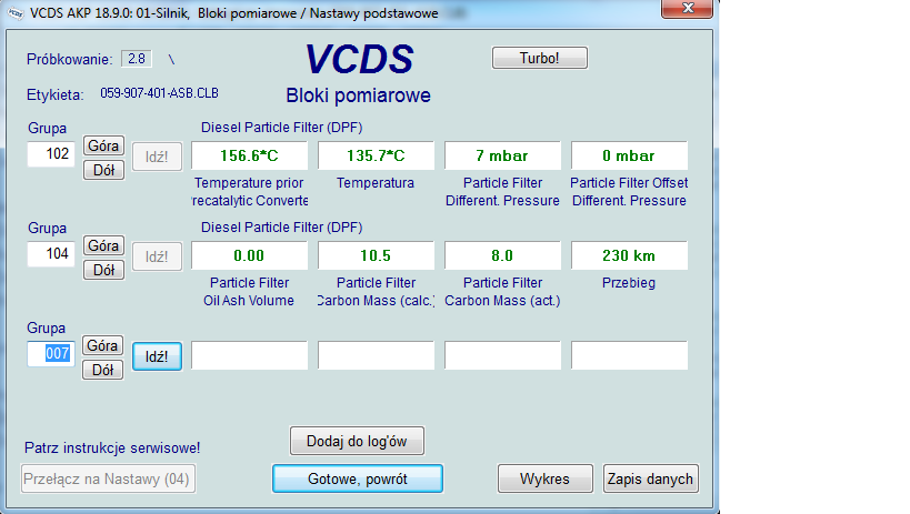 Nie pamiętam tylko pod którym blokiem jest odczyt z sądy Lambda ale jak prze klikasz VCDS-a tam będzie podpowiedz