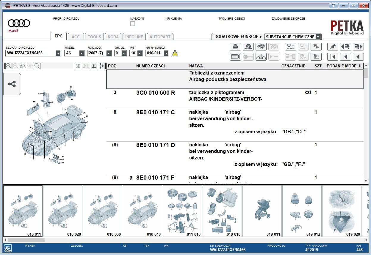 Wersja tylko dla Audi, baza 1421 później 1425.