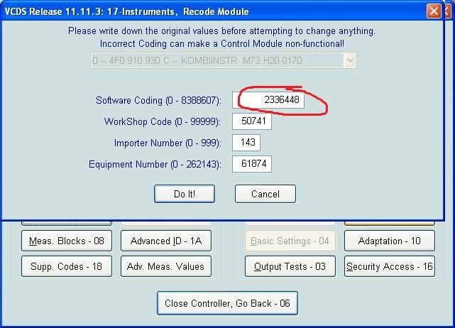 Czyli u mnie wartosc Software Coding po zmianie kraju to 2336848. Przed zmiana najlepiej zapisac gdzies oryginalna wartosc, aby mozna bylo przywrocic w razie problemow. U mnie l/100km pojawily sie od razu po zatwierdzeniu przyciskiem "Do It!"