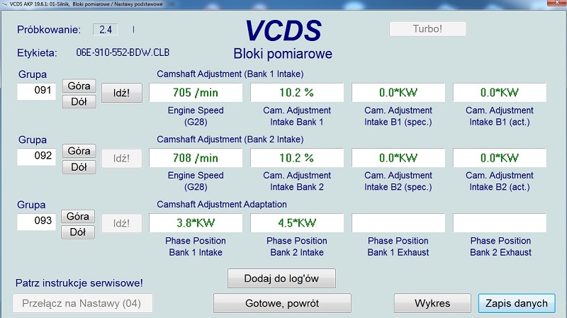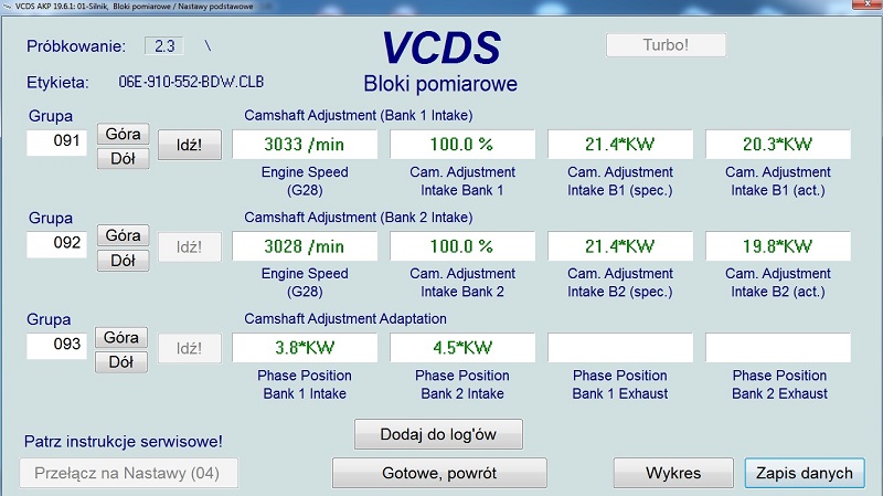 Wykonałem pomiary VCDS-em (nie wiem tylko czy w dobrych kanałach 093,092,091), screeny na załączonych zdjęciach.